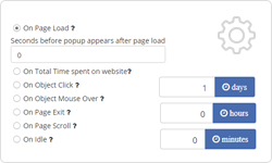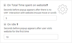 Show popups when there is no interactions or user has spent some time on website browsing different pages.